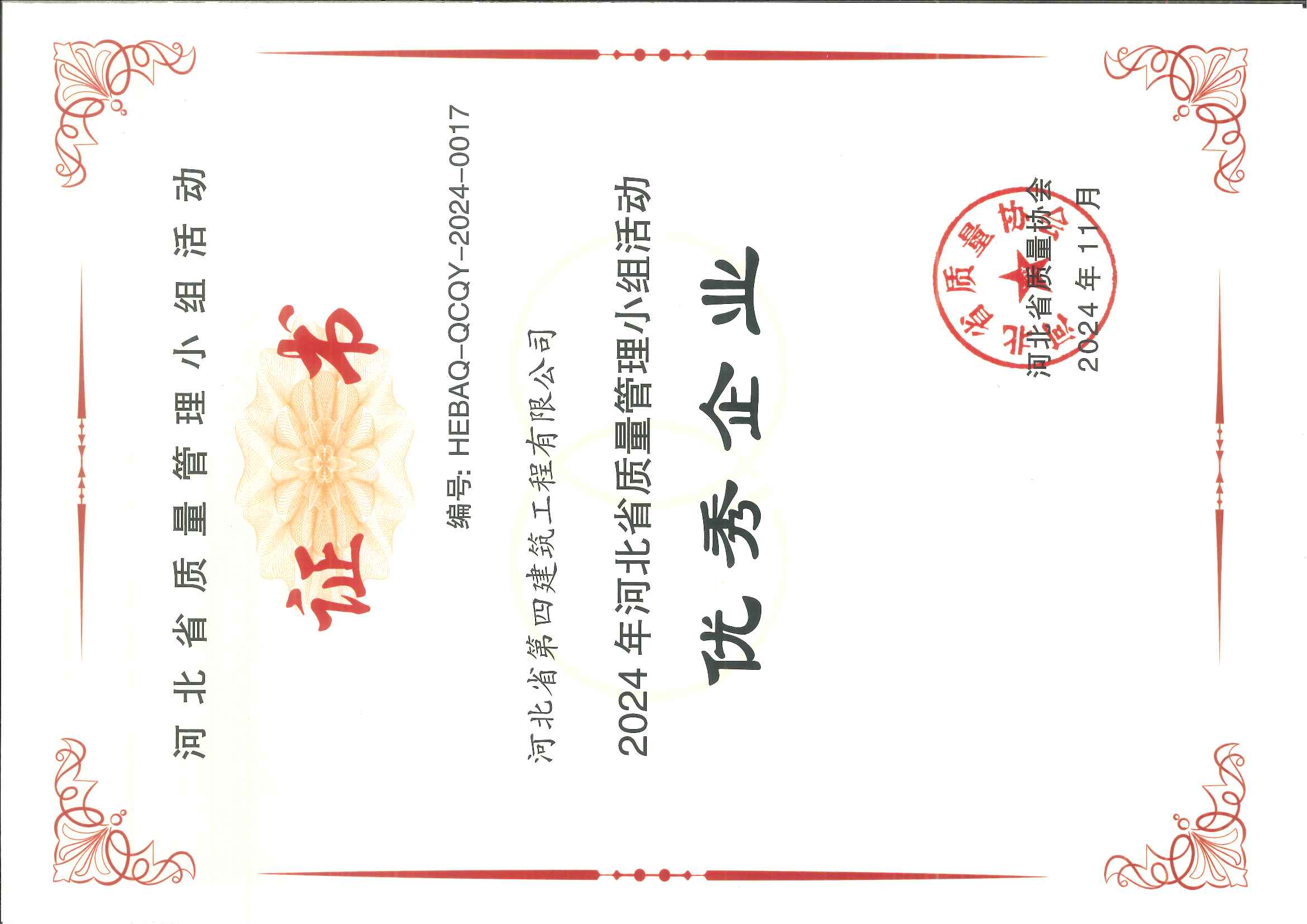 河北四建:2024年河北省质量信得过班组建设活动优秀企业